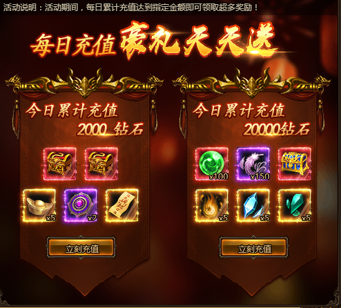 活动期间,每日累计充值达到指定金额即可领取超多奖励!