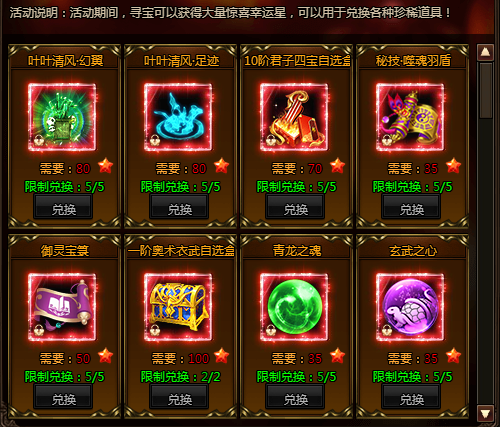 活动期间,寻宝可以获得大量惊喜幸运星,可以用于兑换各种珍稀道!