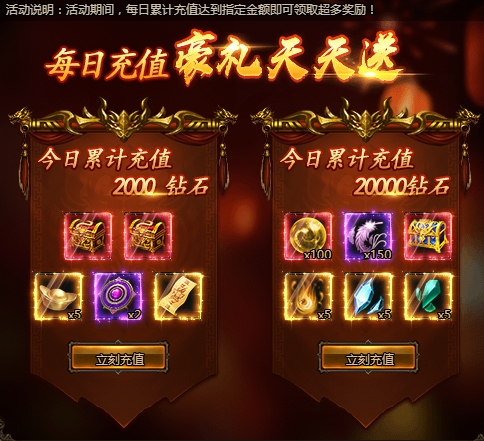 活动期间,每日累计充值达到指定金额即可领取超多奖励!