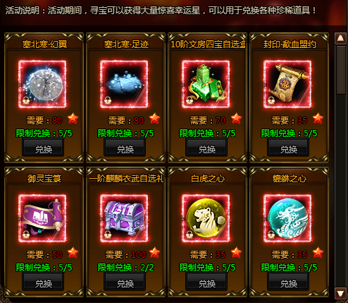 活动期间,寻宝可以获得大量惊喜幸运星,可以用于兑换各种珍稀道!