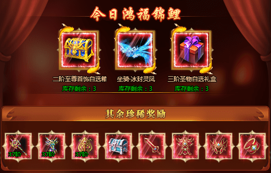 活动期间,每充值100钻石可获得100鸿福鱼食参与抽奖!
