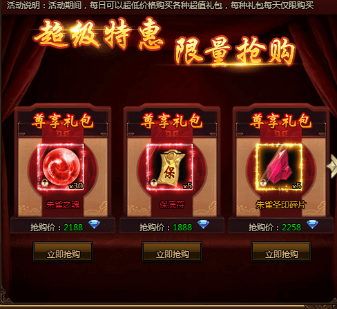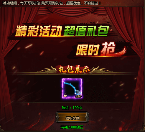 活动期间,每日可以超低价格购买各种超值礼包,每种礼包每天仅限购买!