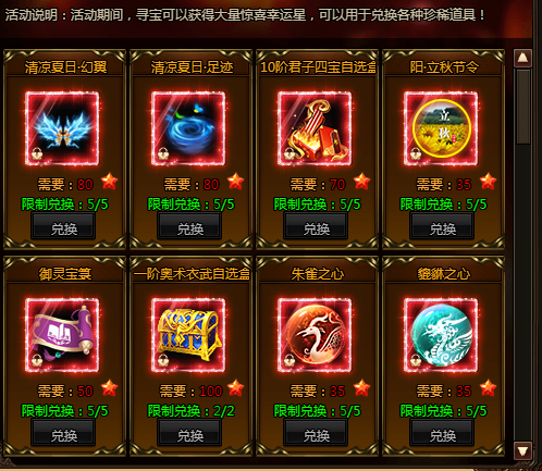 活动期间,寻宝可以获得大量惊喜幸运星,可以用于兑换各种珍稀道!