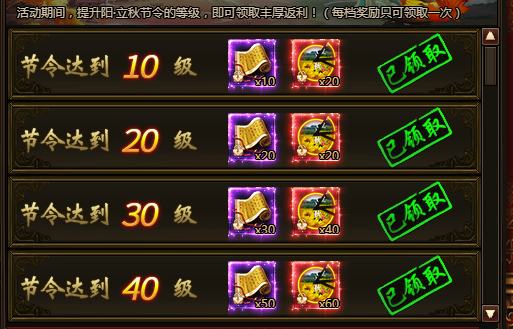 活动期间,玩家每天最多可领取全部返还!根据单次充值钻石判断是否达标,单次充值钻石数量超过要求时,只发剩余最高返还奖励,邮件直到均已发!
