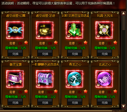 活动期间,寻宝可以获得大量惊喜幸运星,可以用于兑换各种珍稀道!