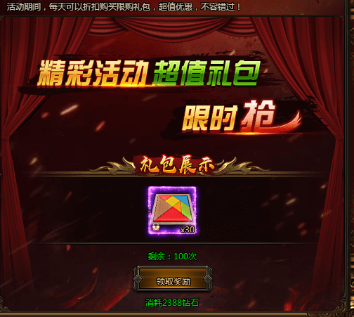 活动期间,每日可以超低价格购买各种超值礼包,每种礼包每天仅限购买!