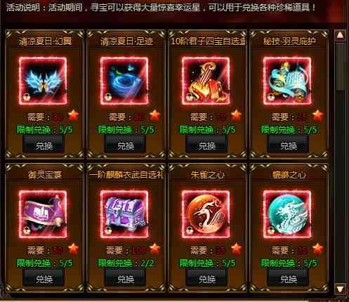 活动期间,寻宝可以获得大量惊喜幸运星,可以用于兑换各种珍稀道!