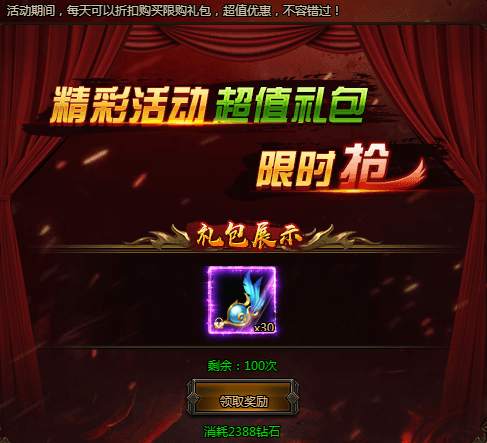 活动期间,每日可以超低价格购买各种超值礼包,每种礼包每天仅限购买!