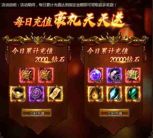 活动期间,每日累计充值达到指定金额即可领取超多奖励!