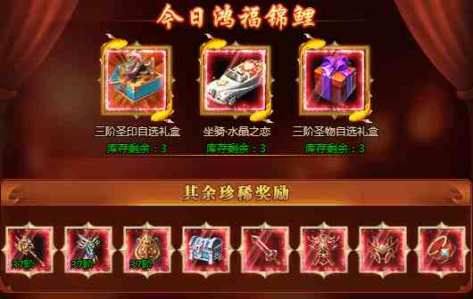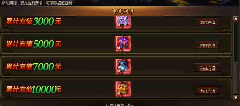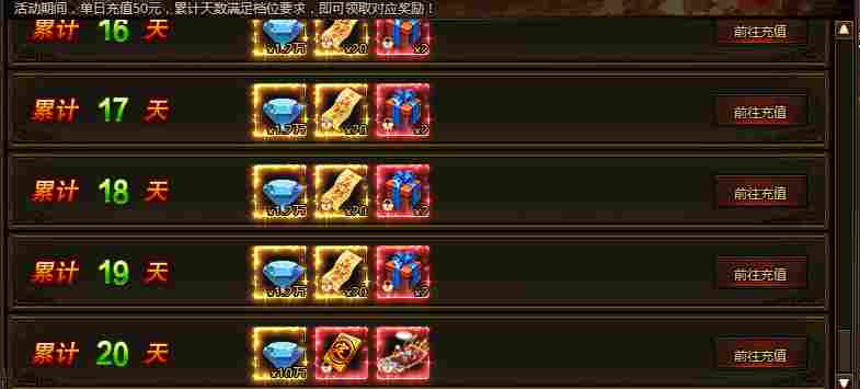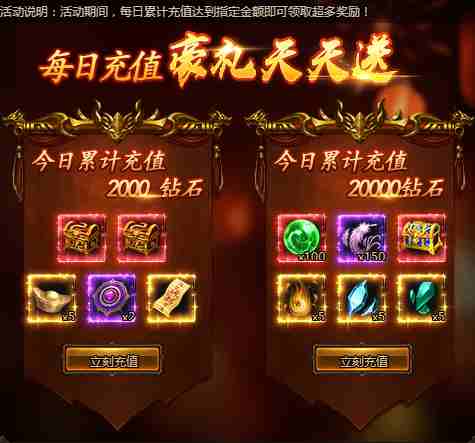 活动期间,每日累计充值达到指定金额即可领取超多奖励!