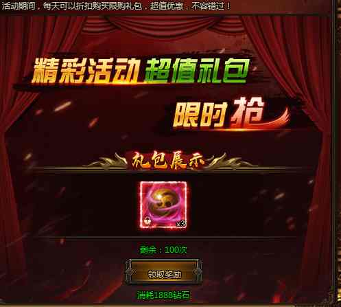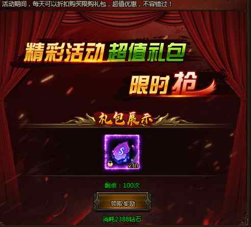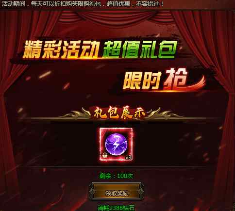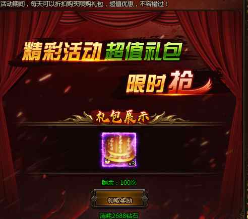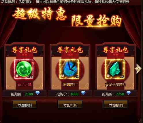 活动期间,每日可以超低价格购买各种超值礼包,每种礼包每天仅限购买!